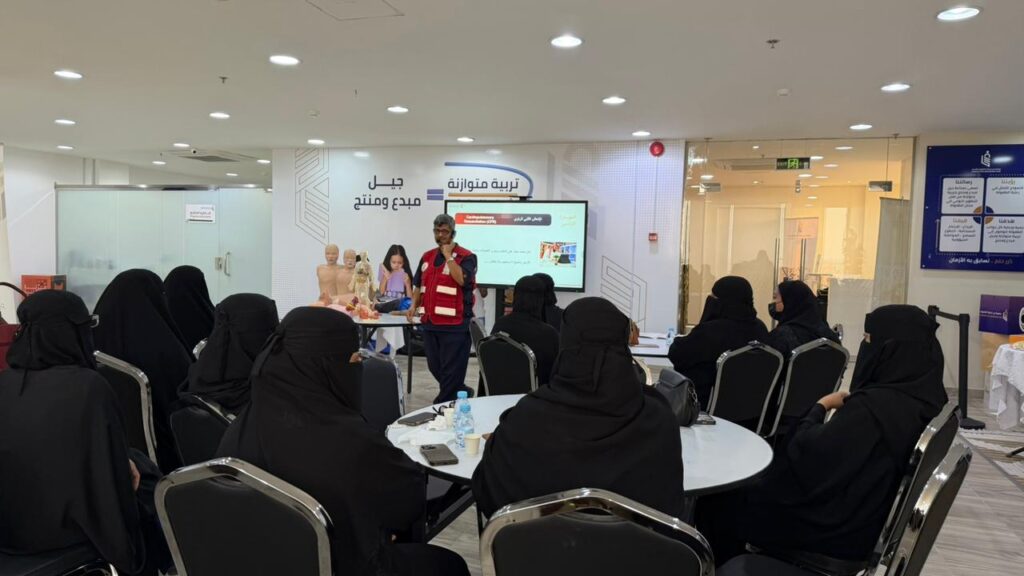 وفي إطار تعزيز جاهزية المتدربات، قدّمت جمعية درر بالتعاون مع هيئة الهلال الأحمر السعودي ورشةً تدريبية في الإسعافات الأولية، نُفِّذت في مقر الجمعية، وركّزت على تزويد المشاركات بالمهارات الأساسية للتعامل السليم مع الحالات الطارئة أثناء رعاية الأطفال، بما يرفع مستوى الأمن والسلامة داخل بيئات الضيافة.